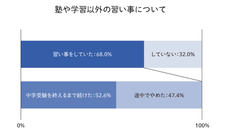 中学受験生の3人に1人は、受験終了までなんらかの習い事を続けているというアンケート結果があります。意外と多いと感じる人もいるのではないでしょうか。